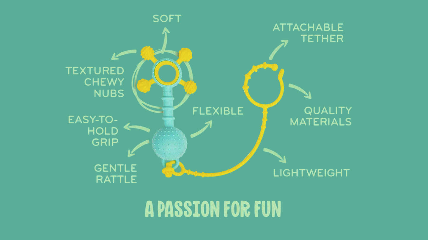 Little fingers can't resist Gumlii's textured, chewy nubs, easy-to-hold grip and gentle rattle! Gumlii was developed bey our team of doctors, therapists and parents to help children explore, learn and grow!