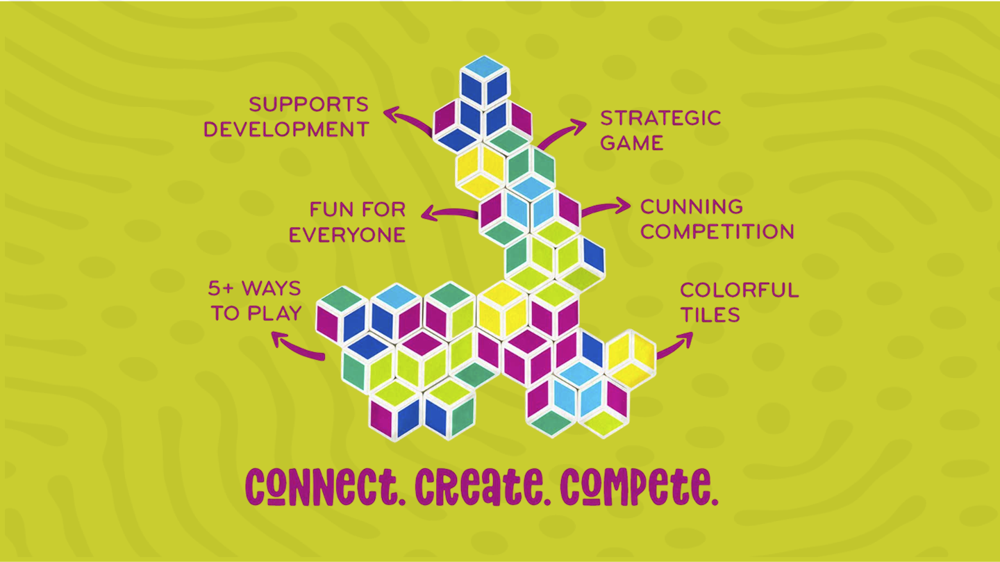 Think dominoes but with a colorful, geometric twist! Stellö is a strategic, color-matching game with all the angles on fun. Creative connections. Cunning competition. With 5+ ways to play, Stellö is sure to be a big hit with everyone!