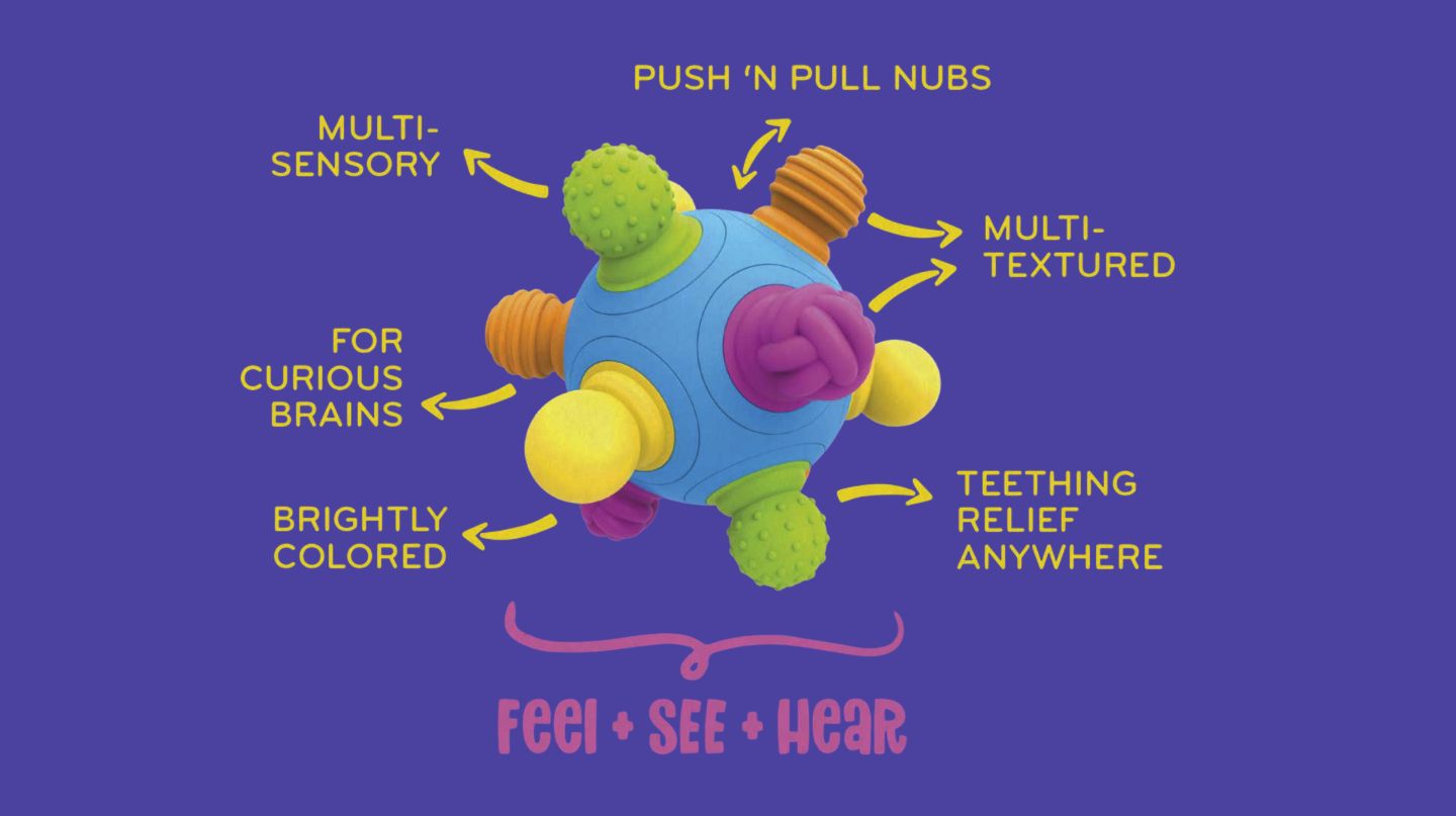 push ‘n pull nubs, bright sensory textures, woblii-ability, endless fun